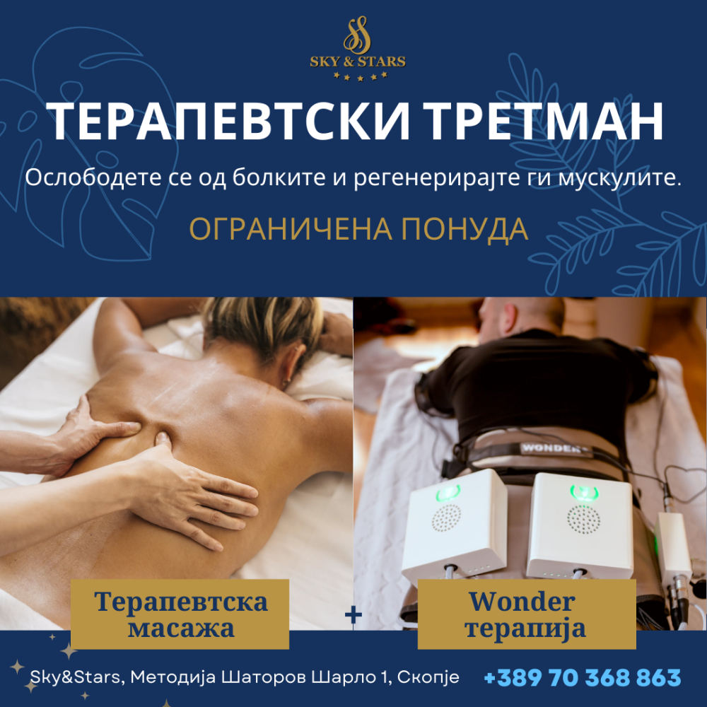Сега, третманот од терапевтска масажа + WONDER терапија го добивате по СПЕЦИЈАЛНА ОГРАНИЧЕНА ЦЕНА од само 2000 ден.